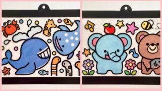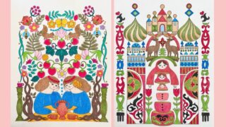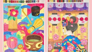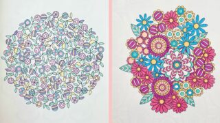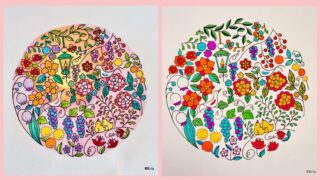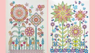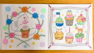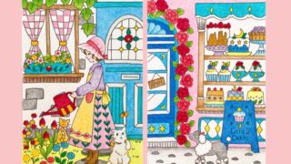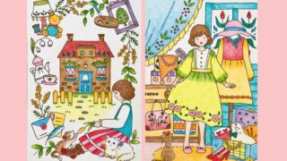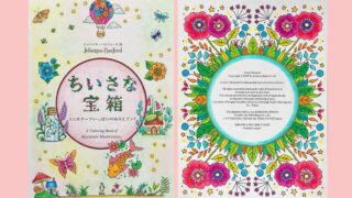 この記事では、ジョハンナさんのミニモチーフいっぱいのぬりえブック『ちいさな宝箱』から、三菱色鉛筆「toirono(トイロノ)」で塗ったページを2枚ご紹介します。トイロノの可愛らしい色合いを活かしてカラフルに塗りました。